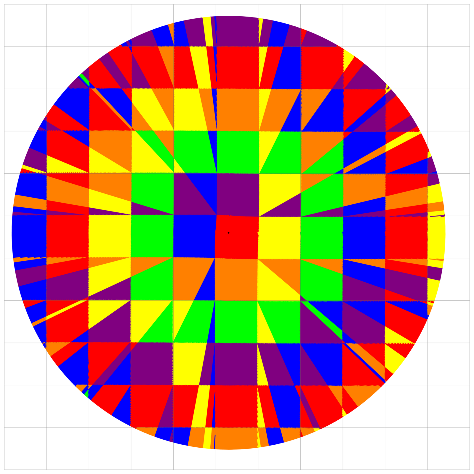 If P is a light source on a cube we can look at W_t(P), the wave front. Every point X of this wave front can be assigned a group element, the rotation which is needed to rotate the initial Frenet frame at the start to the frame at time t. Whenever a geodesic crosses an edge of the cube, the group element gets updated and gets multiplied by a rotation by 90 degrees about one of the coordinate axis. The group G is the rotation symmetry group of the cube. It has 24 elements as you can place the cube on one of the 6 faces and turn in one of 4 angles. The group G is isomorphic the symmetry group S_4 as the permutation representation given by the permutations of the 4 space diagonals is faithful. The group can be generated by two rotations A, B and the corresponding Cayley graph has diameter 4. We can write every group element as a word of length 4 or less like g=ABBA or g=BA^{-1} B (or the empty word which is the identity,. Similarly as in any combinatorial group setting, the Cayley graph is assumed to be non-directed so that we can apply A or its inverse and count this as one letter. The god number of the Rubik cube for example is 20, but that is the story if we can turn a face by 90 or 270 degrees and count as a letter in the word). We can visualize the motion in the G-bundle of the cube by drawing the square on which the initial point is, then unfold this to the entire plane and then color a point on the circle S_t(P) = \{ X \in \mathbb{R}^2, ||X-P||=t \} with the group element color of that point. Along the line segment going from P to X, the group element changes in a periodic or almost periodic matter; the group updates every time that an edge is crossed. The structure of the group \gamma(X) assigned to X \in S_t(P) is complicated. It is natural to conjecture that it is equi-distributed but it looks unexplored and unknown. Even if it were equi-distributed, we would need to show that is equi-distributes fast enough in order to see that the wave front is dense. This January, we made some attempts to write the proof of the density of wave front on the cube down more clearly. The idea is simple: we know that the wave front is dense on the torus: for t >9/\epsilon^2, the wave front on the torus S_t(P) \; mod \; 1 is \epsilon-dense there. We need to show that the wave front is dense also on the cube. What we can do is to take a point Q on the cube. It can be represented as a point (\pi(X),\gamma(X)) in the principle G-bundle on the torus. This is a fancy way to say that if we know the position of the point in a face of the cube and also know how the cube is oriented, then we know the point on the cube. The idea is now to move around on the cube by applying the group elements A or B and to verify that when we do that, we still have wave front elements nearby. Without loss of generality, we only need to see how that works when applying A (which can be thought of as the rotation about the y axis by 90 degrees if the face is the ground face). First take a wave front point \pi(X) that is \epsilon/8 close to Q. This carries a group element g. If we look at the cube point that belongs to the adjacent face to the right, then this is Ag. Its projection on the torus is \pi(Y) but this point is not necessarily on the wave front. We have to move again a bit along the line PY without crossing a grid curve to get to a wave front point \pi(Z) that has the same group element Ag attached. We have now shown that within an \epsilon/4 neighborhood of the point Q on the cube, there are wave front points with group g and with group Ag. Similarly, by doing the same with A^{-1} or B or B^{-1} we can reach points for which the group element has word length 1. Doing the same thing 4 times shows that in an \epsilon neighborhood of Q there are wave front points from all the 24 different group elements. We especially have wave fronts on each of the cube sides nearby. One of them matches the side in which Q had been in. That is the proof. We know that for t \geq 9*64/\epsilon^2, the wave front is \epsilon dense on the cube.