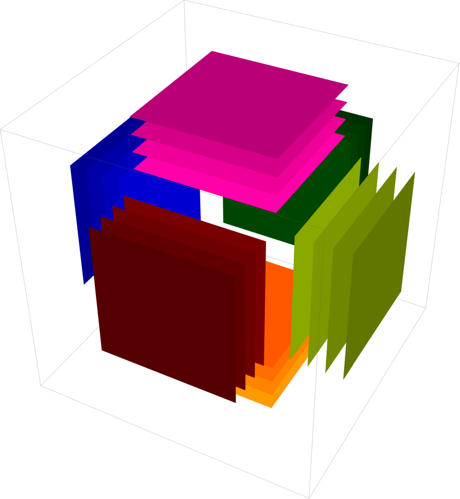 This story is interesting also because it ties in with basic building blocks of dynamical systems. As for every geodesic flow, this geodesic flow that is defined on a set X in the tangent bundle T_1M of the cube M. This set X carries a volume measure and the flow preserves this volume. Due to the nature of the cube, if the initial velocity v is given, it defines a vector in space and at each later time, this velocity vector is of the form g v, where g is an element in the finite rotation group G that preserves the cube. In the smooth case, if f_t: M \to M is the geodesic flow and a: M \to sl(3,\mathbb{R}) is a matrix valued Frenet curvature matrix describing the motion of the TNB frame attached to an orbit, then we have a cocycle A_t \in SO(3,\mathbb{R}) that has the property that A'(c_t) = a(c_t) A(c_t). In our case the curvature matrix is a distribution so that A_t remains in a finite subgroup of the rotation group SO(3,\mathbb{R}). The behavior of this cocycle is hard to predict because of the non-commutative nature. This is one of the major difficulties why Lyapunov exponents of dynamical systems in dimensions larger than 1 are so difficult. The cocycles are in a non-Abelian group. The Birkhoff ergodic theorem which allows just to compute expectations to get time averages does not work any more. It is replaced by a non-commutative version, the Oseledec theorem. But the outcome is very hard to compute. Even in the simplest situations like the standard map (x,y) \to (2x-y+c \sin(x),y) on the 2-dimensional torus, where nobody has proven positive Lyapunov exponents on a set of positive measure for any value of c. One of the standard pictures of that game, (especially if the cocycle takes values in a finite group) is to look at the dynamics on the space $M \times G$ which in the case of the cube is the “translation surface” of the cube. It is the flat surface you get when unfolding along the orbits. We see the translation surface to the right.
